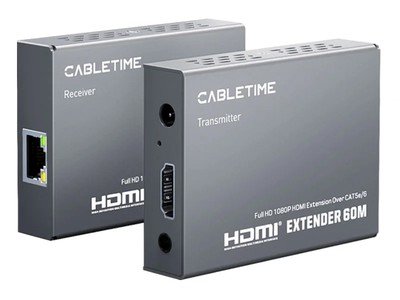 Το HDMI extender της Cabletime μπορεί να μεταφέρει σήματα βίντεο και ήχου μέσω ενός καλωδίου δικτύου RJ45 αντί HDMI, το οποίο είναι σημαντικά οικονομικότερο. Η απόσταση μεταφοράς σημάτων βίντεο και ήχου μέσω του καλωδίου δικτύου μπορεί να φτάσει έως 60m.