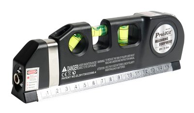 Πολυλειτουργικό αλφάδι της PROSKIT με laser κόκκινης δέσμης, 3 μάτια, 250cm μετροταινία και 15cm χάρακα.